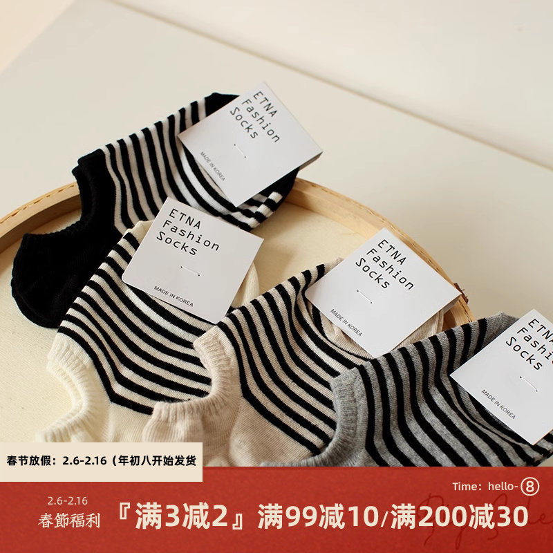 韩国条纹控学院风低帮短袜子运动休闲夏款透气防臭隐形浅口船袜女