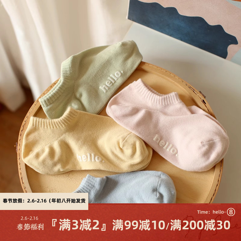 彩色糖果色低帮浅口吸汗透气船袜子少女甜美ins春夏款字母纯棉袜