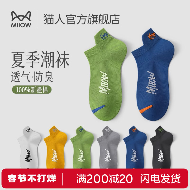 猫人男袜冬季棉袜透气吸汗中筒袜防臭抑菌船袜男士运动袜学生短袜