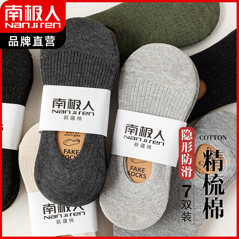 南极人棉袜子男士春夏吸汗透气短筒运动低帮隐形浅口硅胶防滑船袜