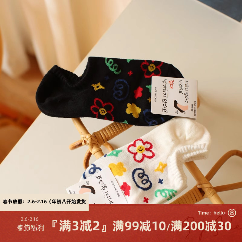 不会丢的袜子爱心花朵短袜甜酷风女孩日系低帮潮袜薄款透气船袜夏