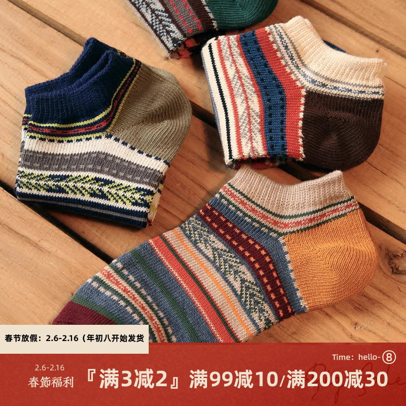 大码黑白条纹卡通创意船袜个性潮拼色文艺短袜夏季纯棉薄款袜子男