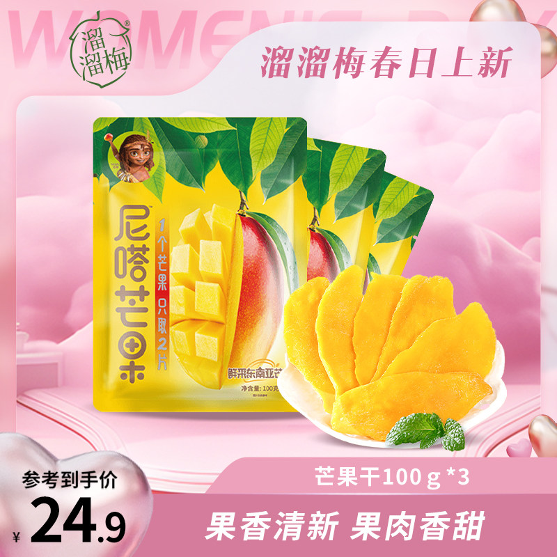 溜溜梅0防腐剂芒果干100g*3袋东南亚果干芒果水果干烘培休闲零食