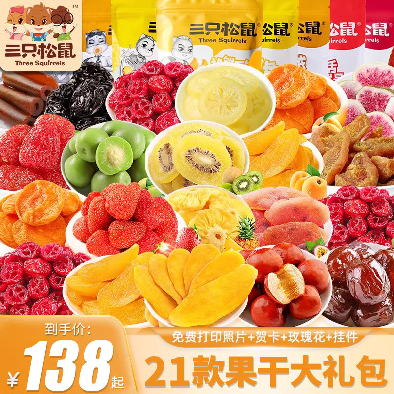 三只松鼠水果干零食大礼包礼物芒果混合装休闲小吃蜜饯果脯年货礼