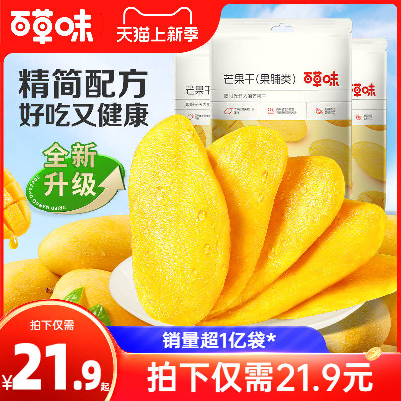 百草味芒果干120gx3水果干厚切果脯蜜饯爆款零食休闲小吃果干