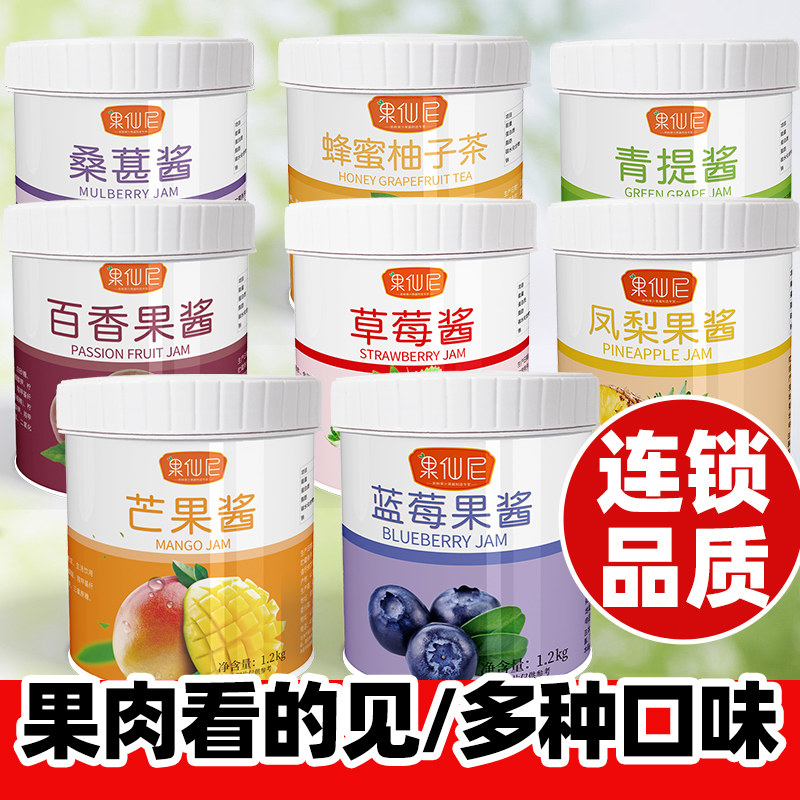 果仙尼葡萄果酱草莓酱奶茶配料青提水蜜桃百香果蓝莓芒果果酱商用