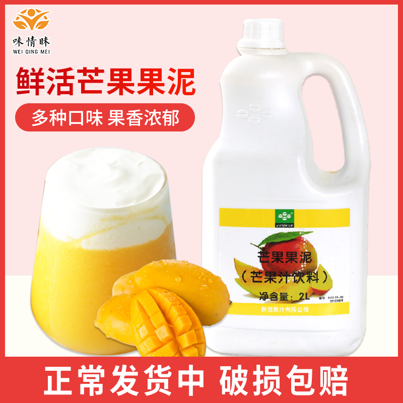 鲜活芒果果泥2L/瓶刨冰沙冰芒果泥果酱芒果汁饮料浓缩奶茶店原料