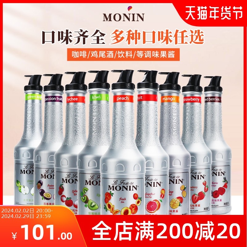 MONIN莫林果酱 草莓百香果水蜜桃菠萝芒果荔枝柿子风味果酱1L果泥