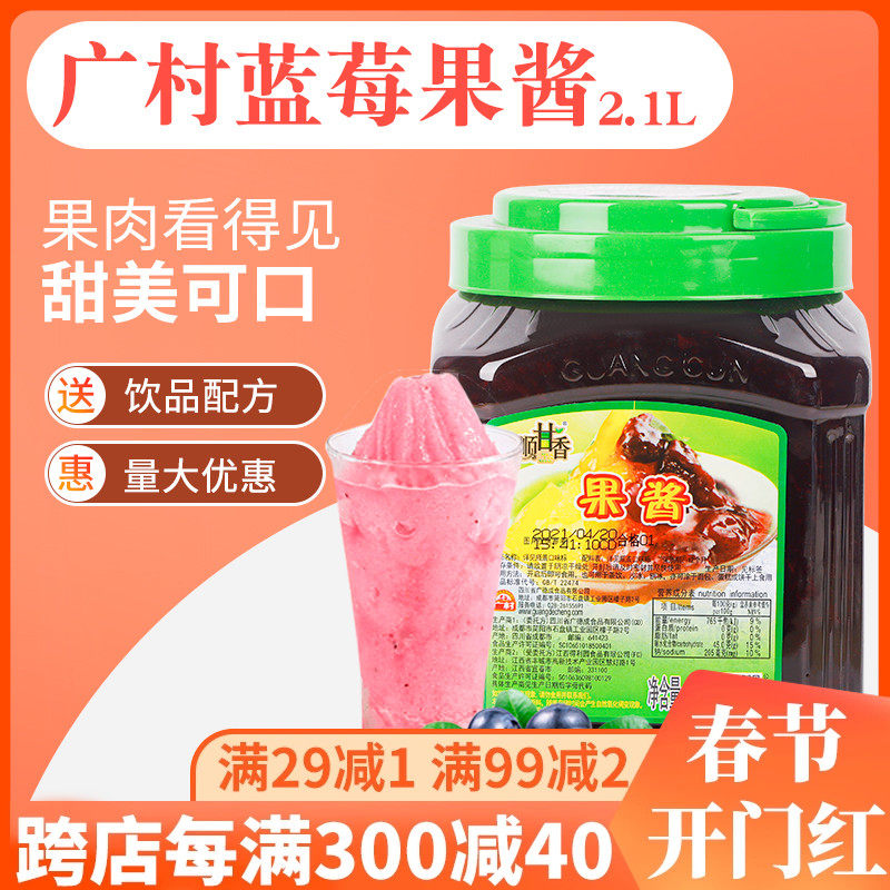 广村蓝莓果酱2.1L芒果凤梨草莓果泥酱刨冰沙冰商用奶茶店专用A级
