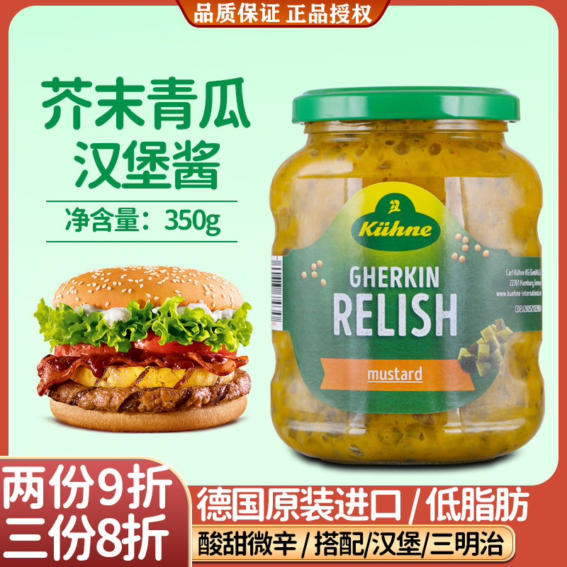 进口冠利芥末青瓜蓉汉堡酱350g三明治面包酸黄瓜酱蛋黄酱低脂酱料