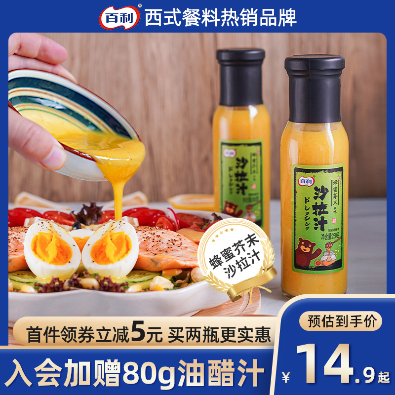 百利沙拉汁蜂蜜芥末味0脂肪黄芥末酱炸鸡薯条蘸酱寿司专用沙拉酱