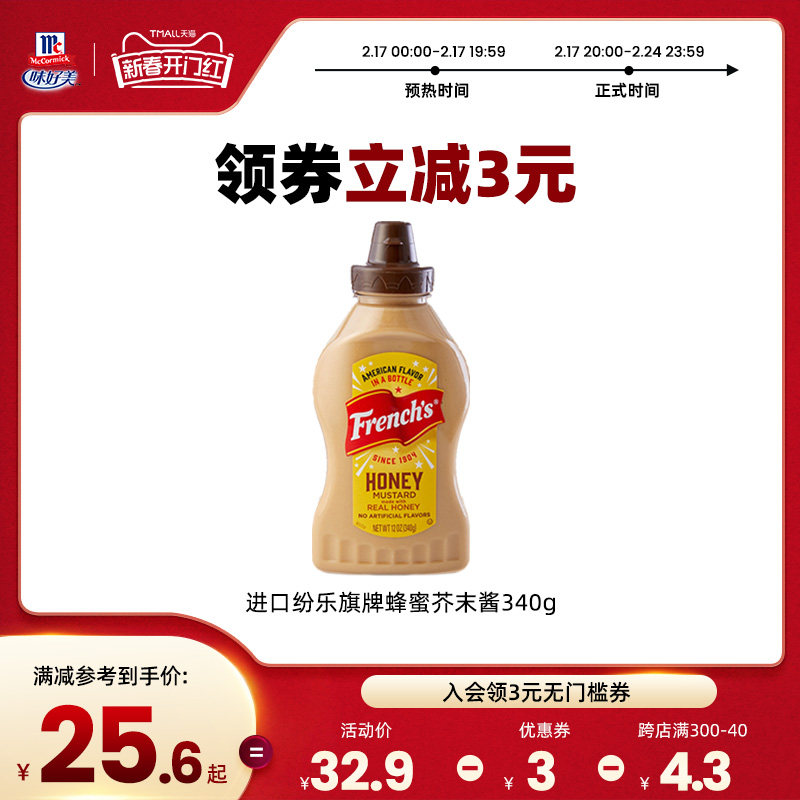 味好美官方旗舰店纷乐旗蜂蜜芥末酱340g芥末酱三明治汉堡热狗酱