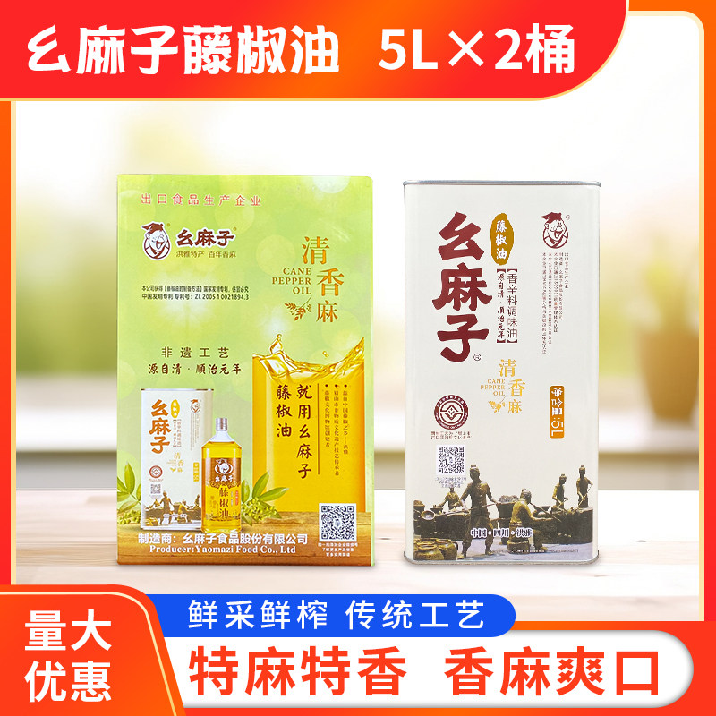 幺麻子藤椒油5L*2桶整箱四川特产大瓶铁桶餐饮装花椒油香麻油吆麻