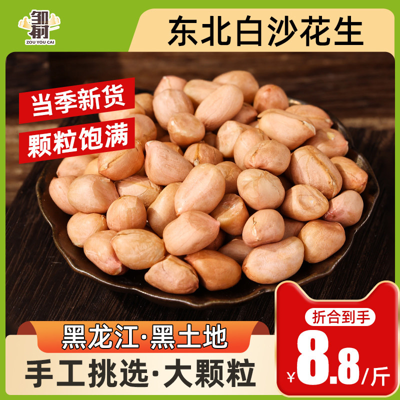 东北白沙生花生米新货特大颗粒新鲜粉皮红衣花生仁不带壳去干花生