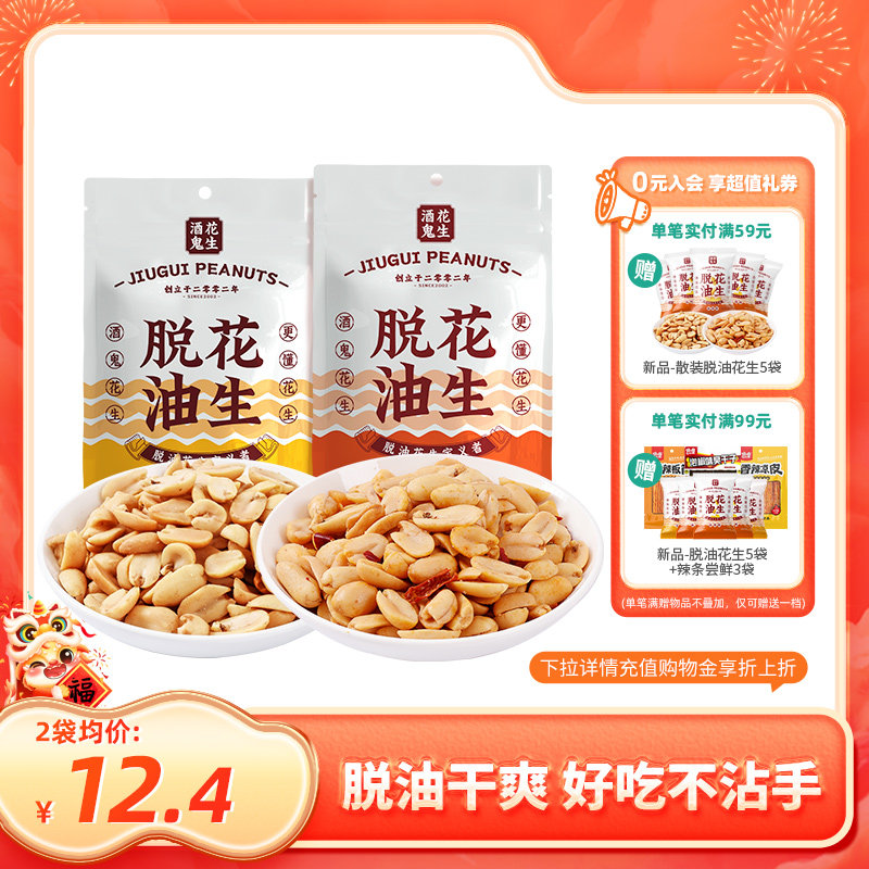 酒鬼花生脱油花生米麻辣五香味216g散装独立袋坚果零食下酒菜