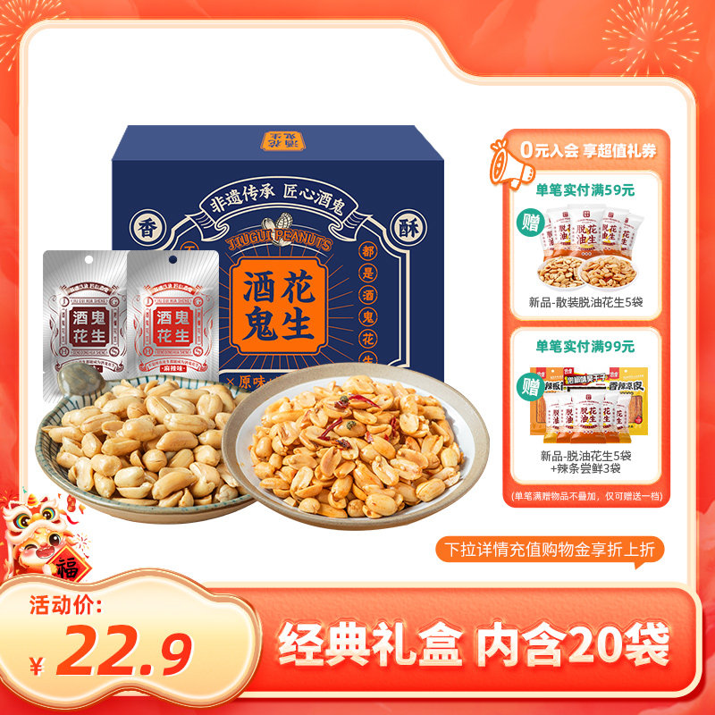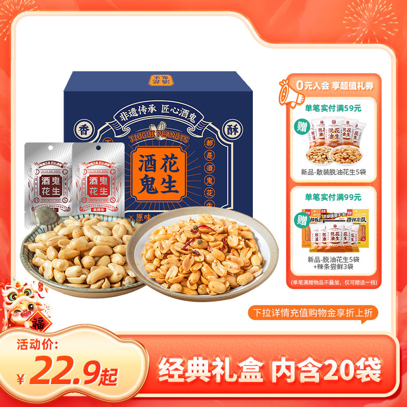 酒鬼花生旗舰店礼盒400g小包装20袋麻辣原味五香花生米零食下酒菜