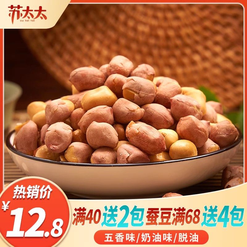 【三只松鼠_鱼皮花生500g】脆皮豆每日坚果脆皮花生米怀旧零食