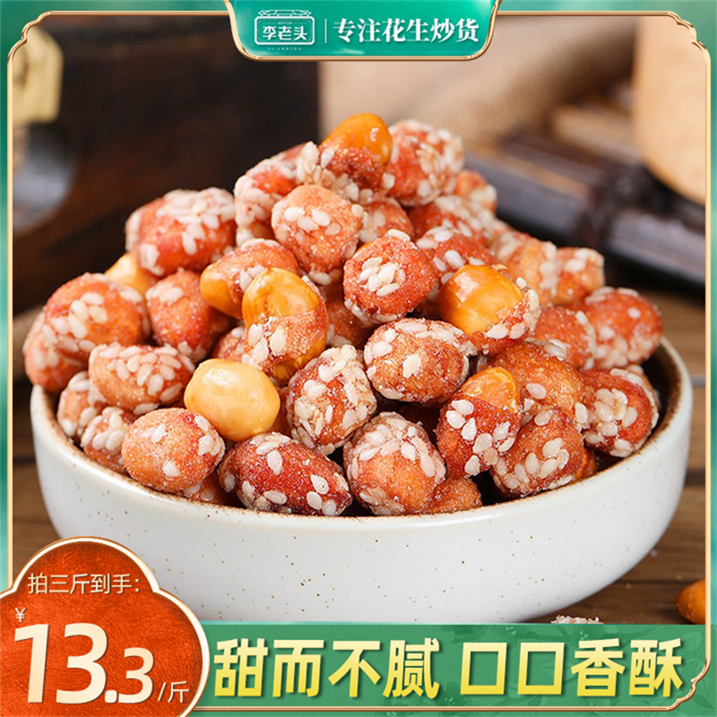 李老头蜂蜜芝麻琥珀花生米熟零食糖霜香酥新货500g袋装炒货甜脆豆