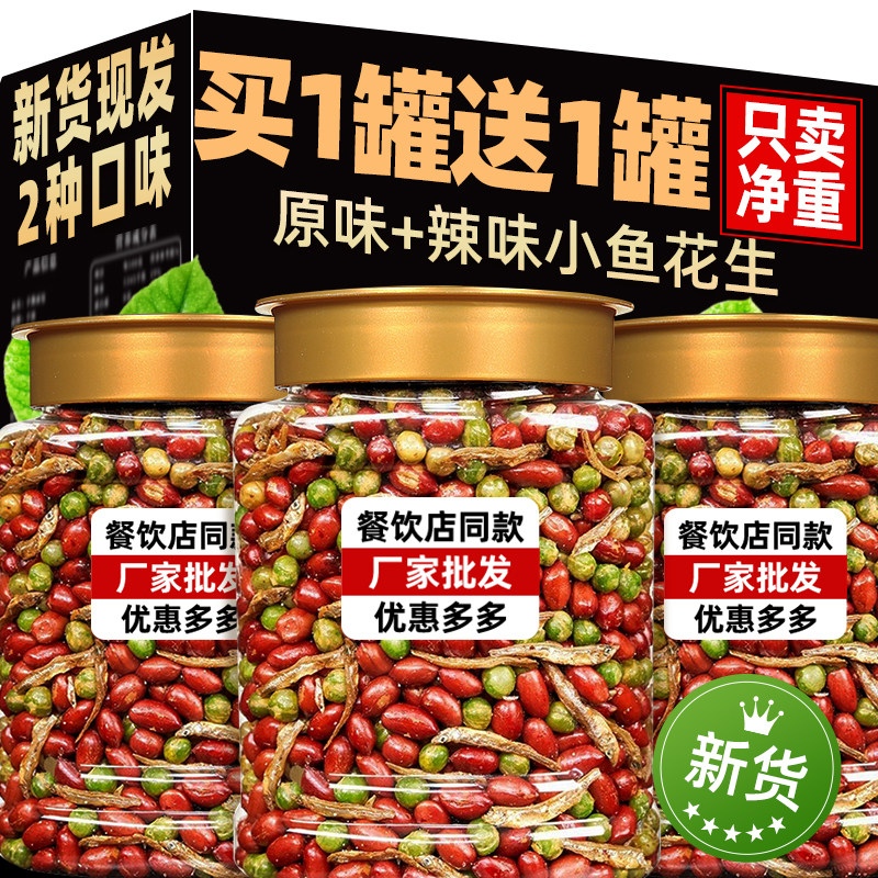 小鱼花生米下酒菜开袋即食大罐装多味油炸花生零食小吃烧烤店商用