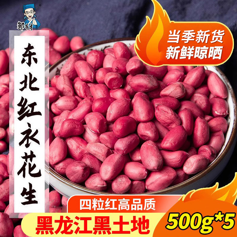 东北红衣生花生米500g黑龙江四粒红花生仁新鲜红皮不带壳新货米仁