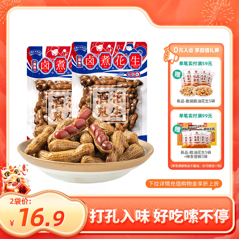 酒鬼花生旗舰店210g香辣卤煮汁花生下酒菜零食小吃水煮花生米