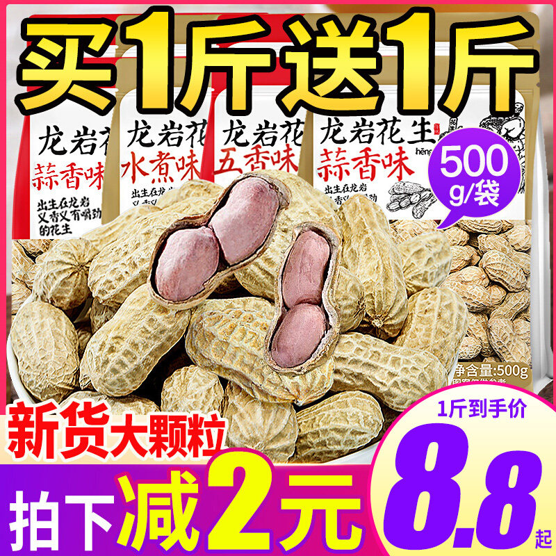 龙岩花生蒜香五香香酥原味盐水白晒咸干水煮花生米带壳炒货熟零食