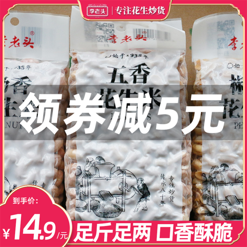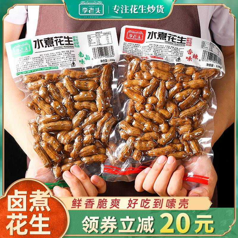 李老头水煮湿花生米卤味香辣红皮带壳花生下酒菜零食小吃开袋即食