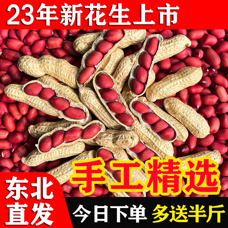 2023新鲜红皮花生带壳生四粒红花生米农家自种晒干炒货原味花生仁