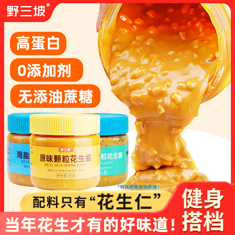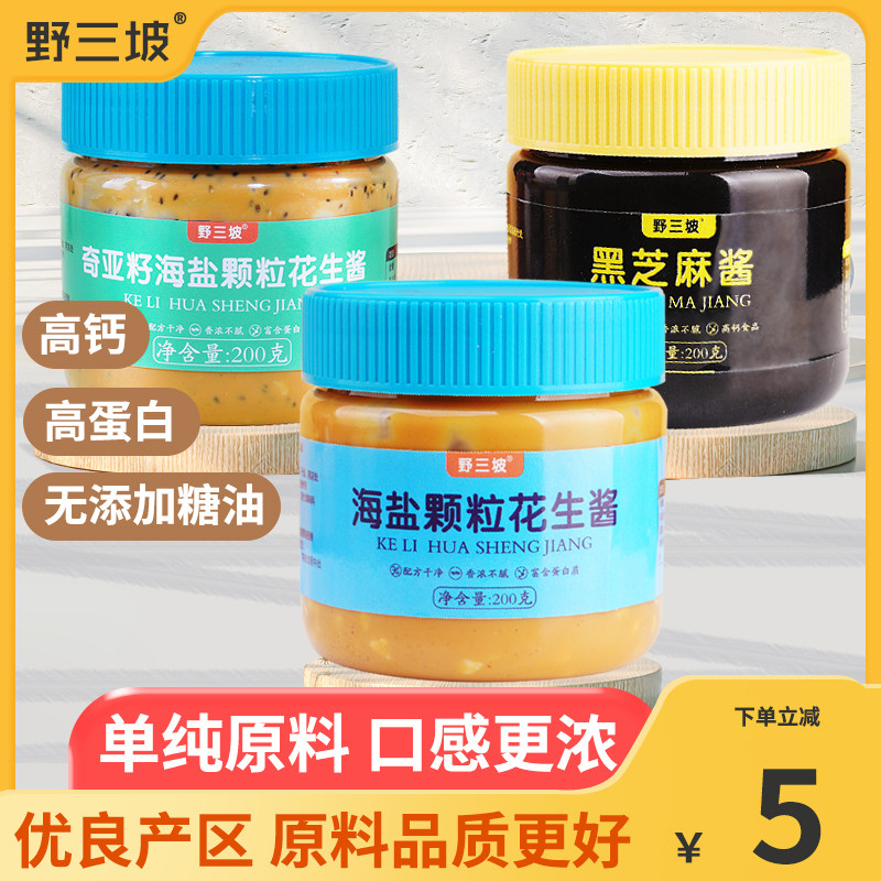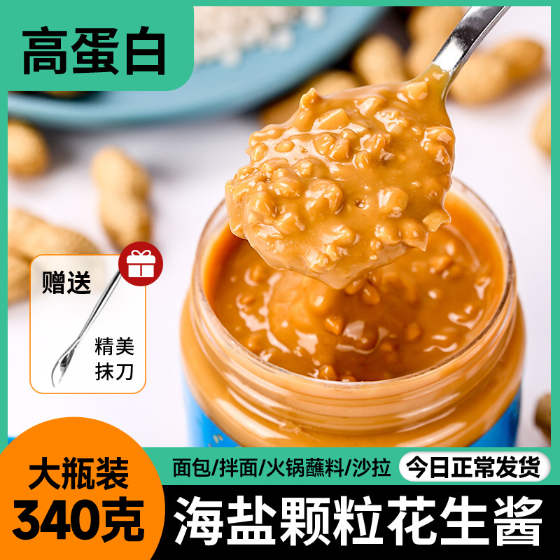 海盐花生酱颗粒奇亚籽纯低0减无添蔗糖面包酱料卡脂肪肥健身拌面