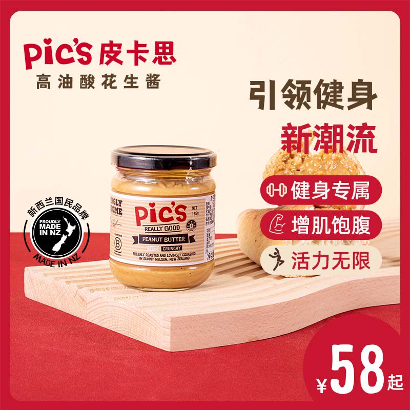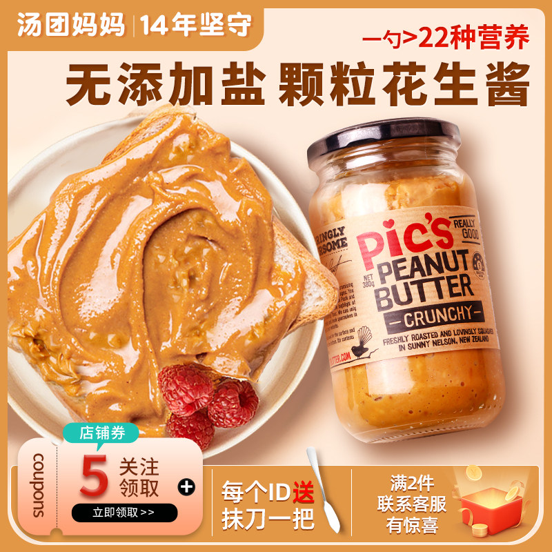 皮卡思纯花生酱pics新西兰健身面包拌面三明治花生酱无送儿童食谱