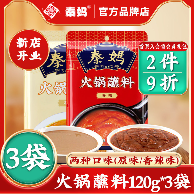 秦妈火锅蘸料120g*3袋原味麻酱涮羊肉拌面调料芝麻花生酱香辣蘸酱