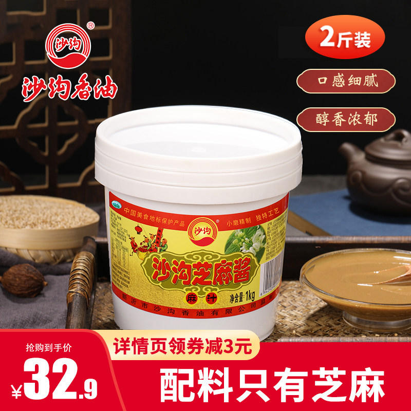 沙沟纯芝麻酱2斤装 正宗麻汁桶装商用火锅蘸料拌面调料无花生1KG