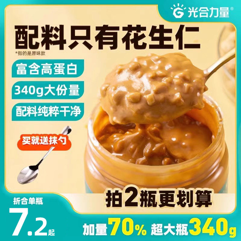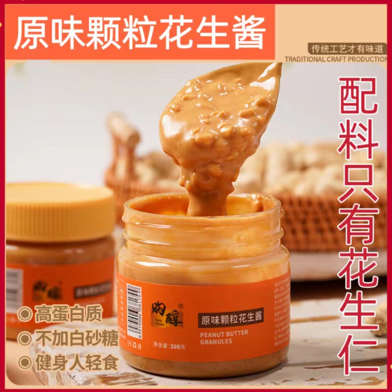 颗粒纯正花生酱健身无蔗糖精卡芝麻二八酱三明治面包拌面酱料麻酱