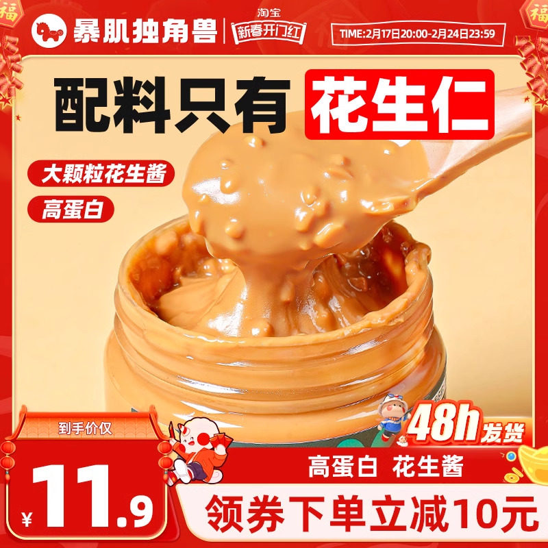 暴肌独角兽丨花生酱大颗粒海盐无糖精健身早餐抹面包火锅拌面调料
