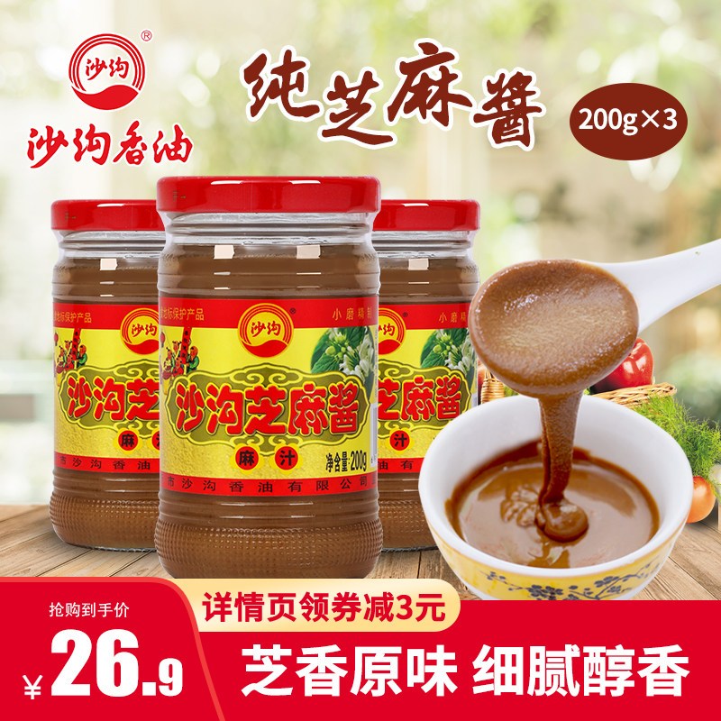 沙沟纯芝麻酱200g*3正宗热干面拌面酱原味醇香无花生火锅麻汁蘸料