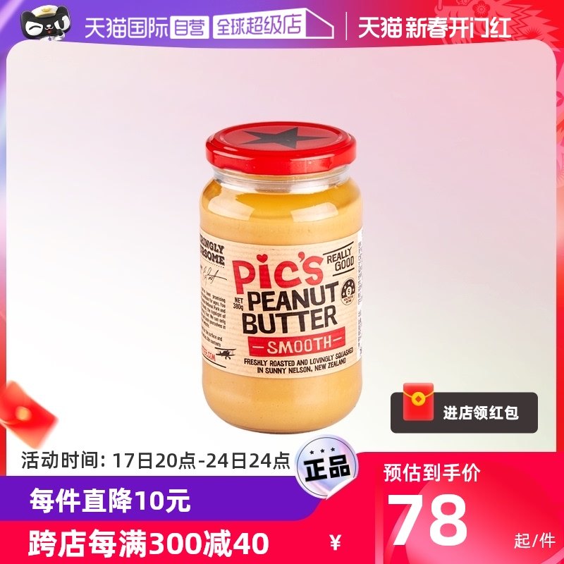 【自营】新西兰进口Pics皮卡思顺滑颗粒健身生酮花生酱面包酱