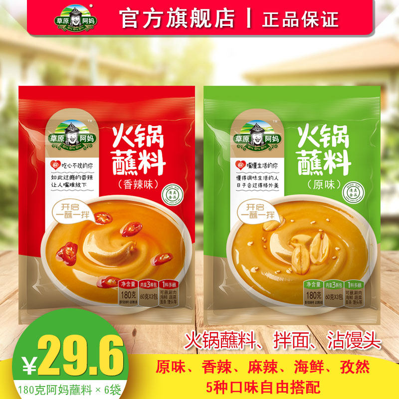 草原阿妈香辣原味火锅蘸料家用芝麻花生酱5种口味可自选180g*6袋
