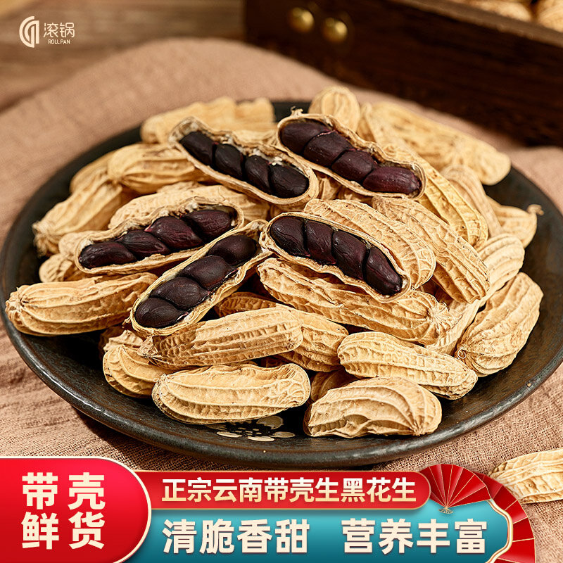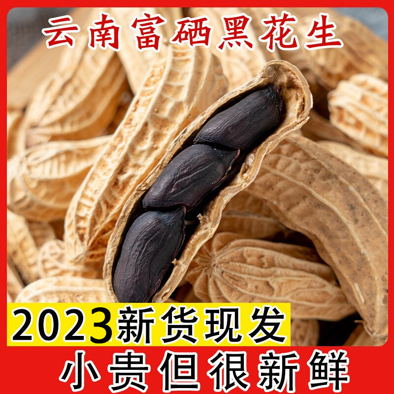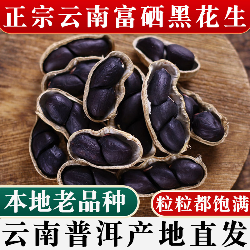 23年原味富硒黑花生带壳小粒黑花生味甜黑皮种籽500g云南普洱特产