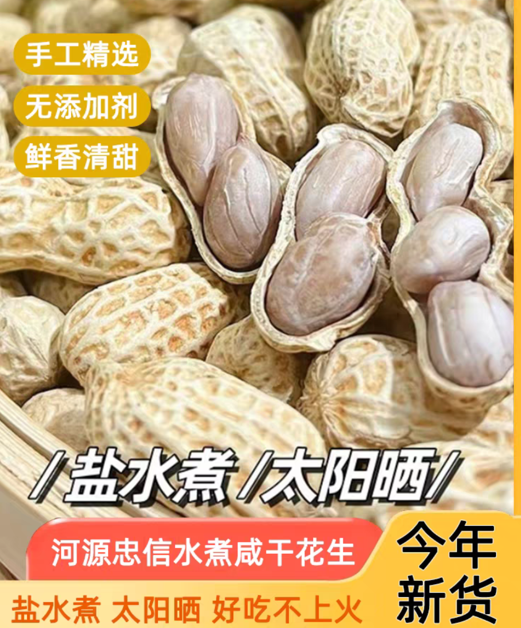 2023年新鲜水煮晒干原味花生咸干带壳花生米休闲零食坚果特产
