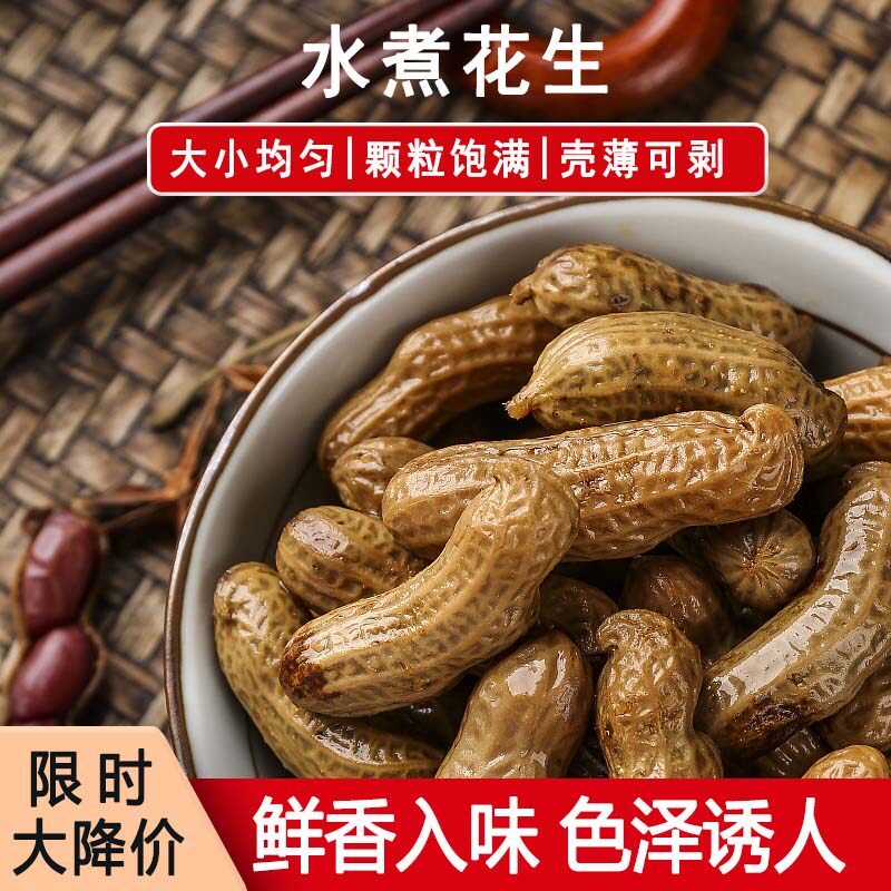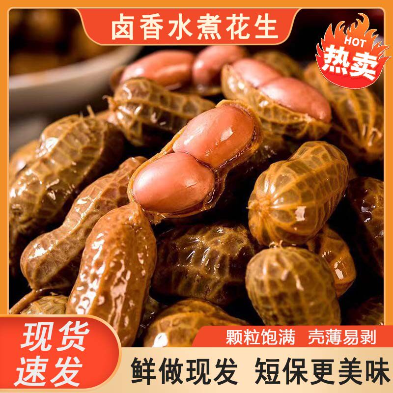 新鲜卤汁水煮花生五香带壳花生新鲜盐水卤味湿花生咸长果带皮