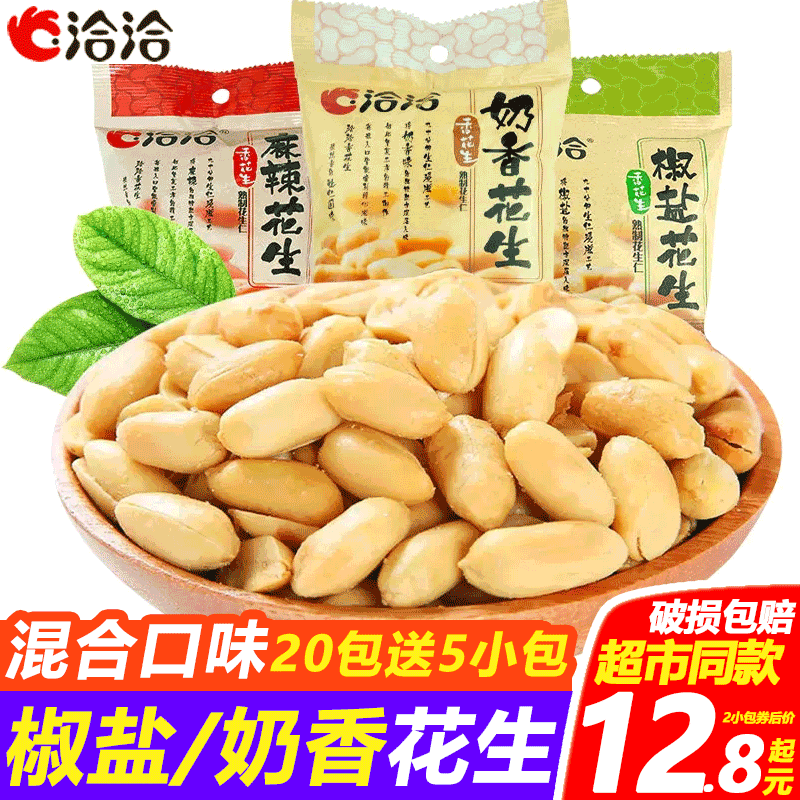 洽洽椒盐味花生130g10袋装恰恰麻辣熟花生米小包装零食年货奶香味