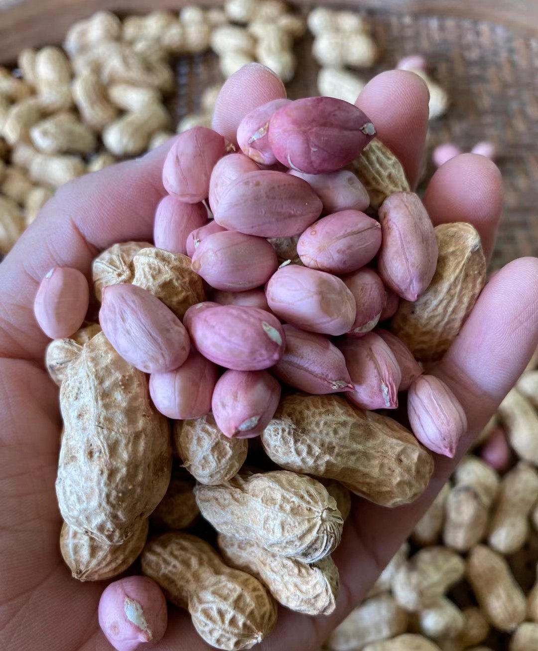 2023年新鲜带壳生花生晒干高产早熟花生种籽人工手剥粉红皮花生米