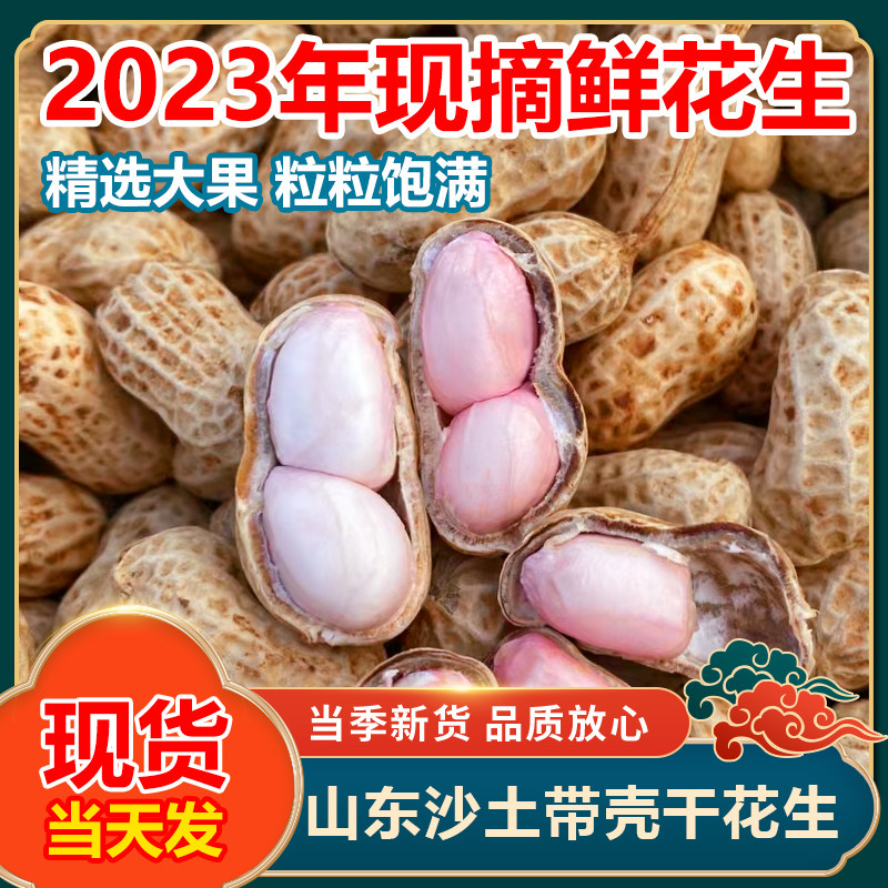 2023正宗山东新鲜干花生果带壳生花生晒干粉红皮薄壳当季现摘大果