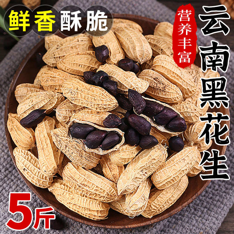 2022新货云南黑花生5斤装新鲜蔬菜农家特产带壳富硒黑皮花生包邮