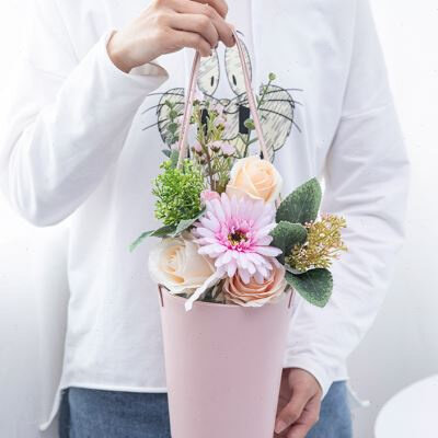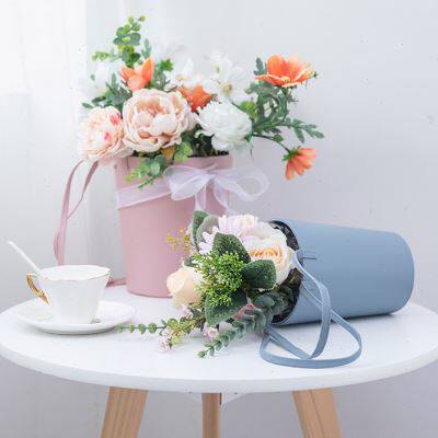 销皮质手提花桶礼物防水花篮花盒鲜花包装抱抱桶花艺包装材料花店