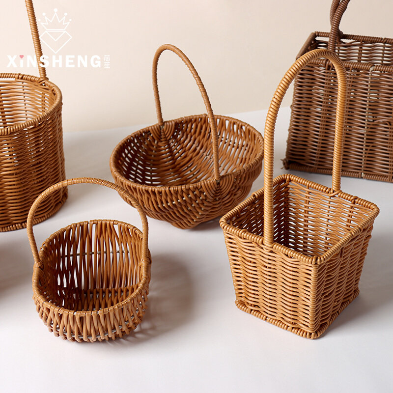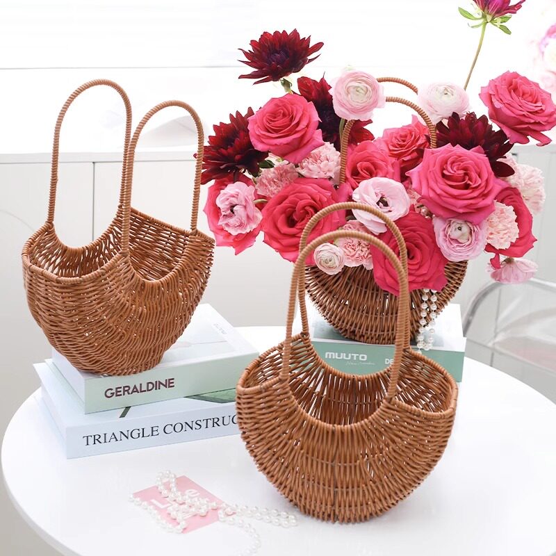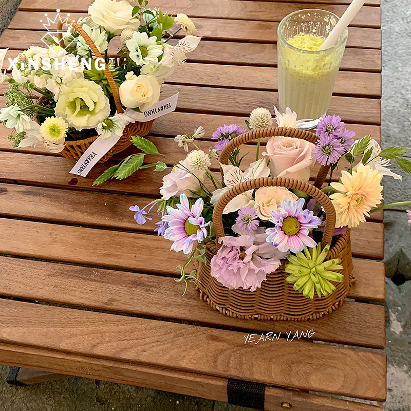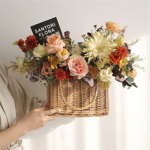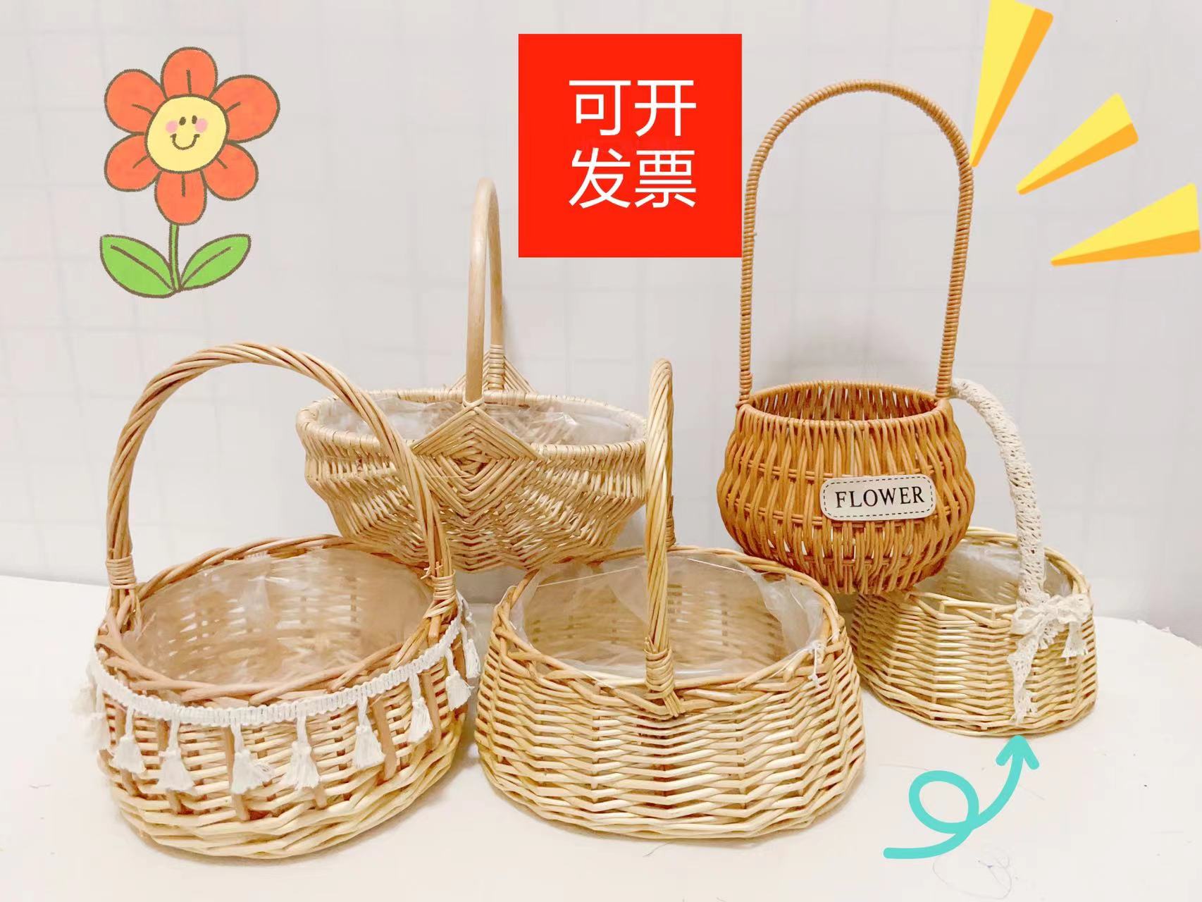 定制插花藤编花篮手提鲜花干花婚礼花童拍照花店花艺包花编织篮子