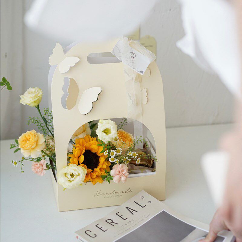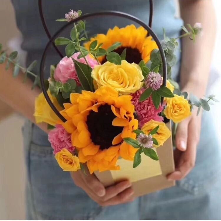 鲜花玫瑰向日葵插花盒子s插花课手提花篮花艺包装盒花束礼盒毕业