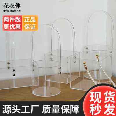 轻奢珍珠手提亚克力花盒高透鲜花花束插花艺资材手工diy花篮材料