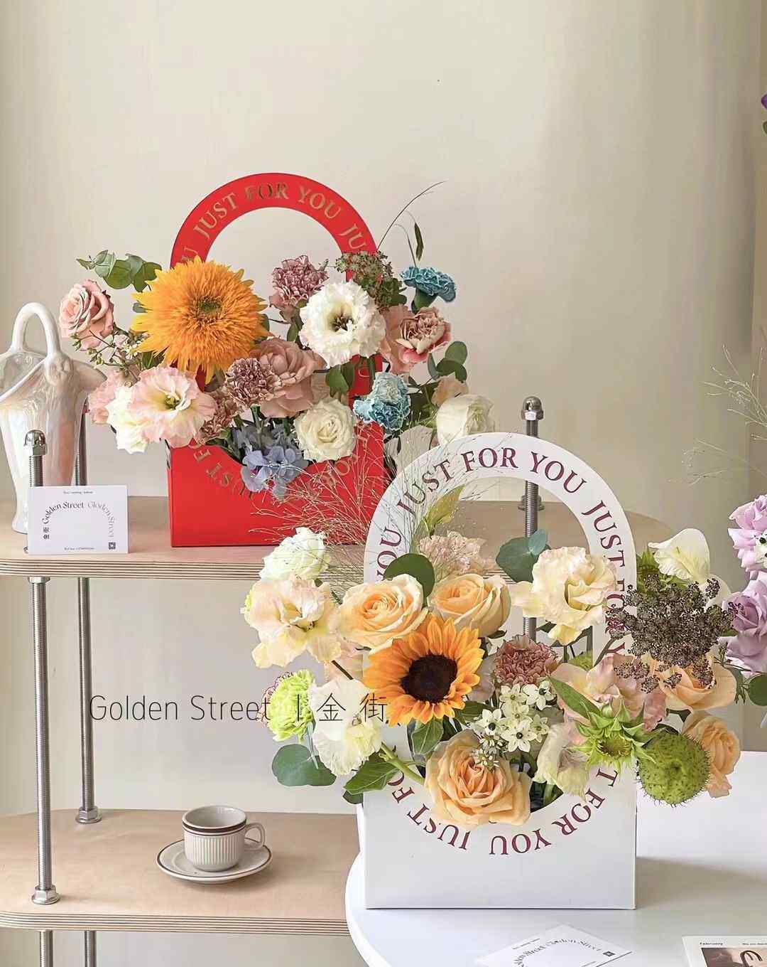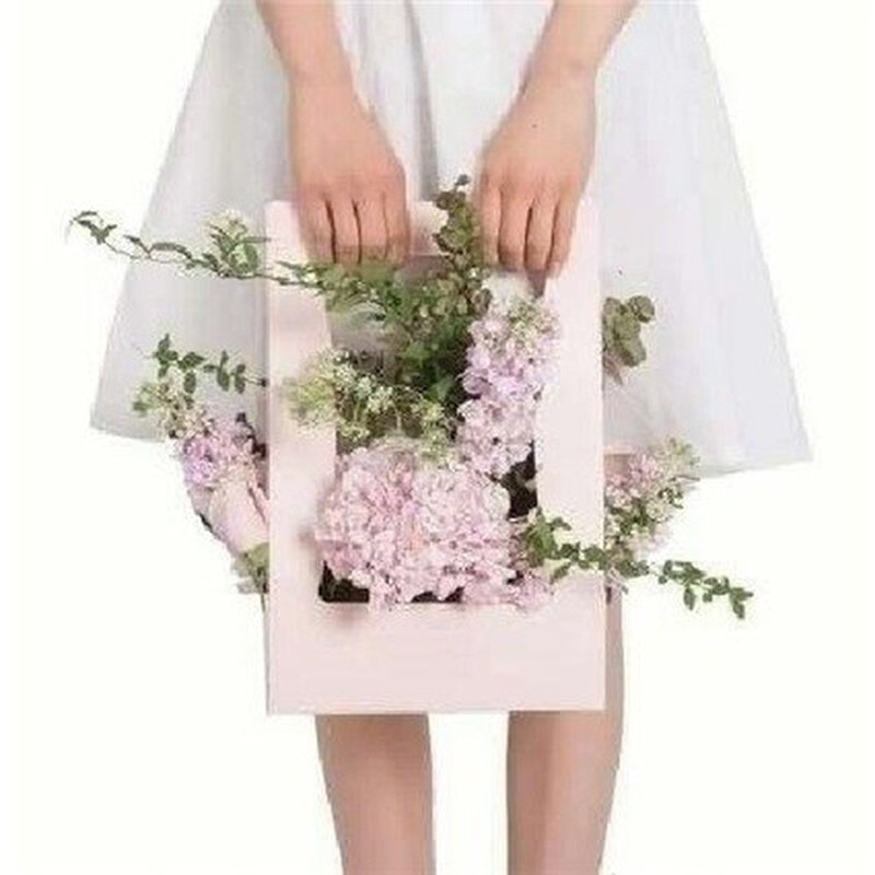 定制时尚鲜花包装盒女神节镂空手提花篮教师节鲜花花束花艺插花纸