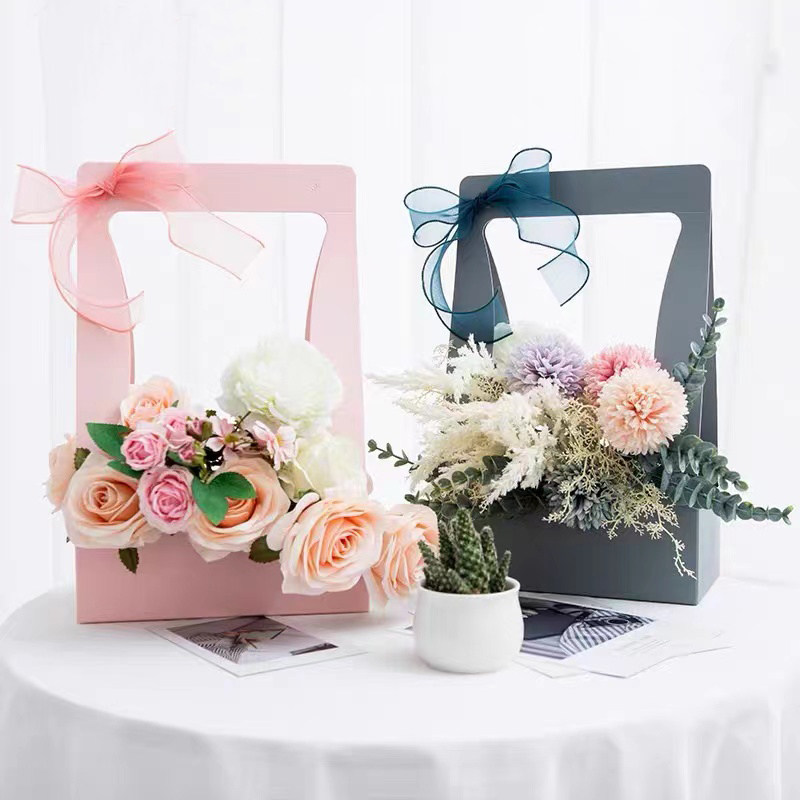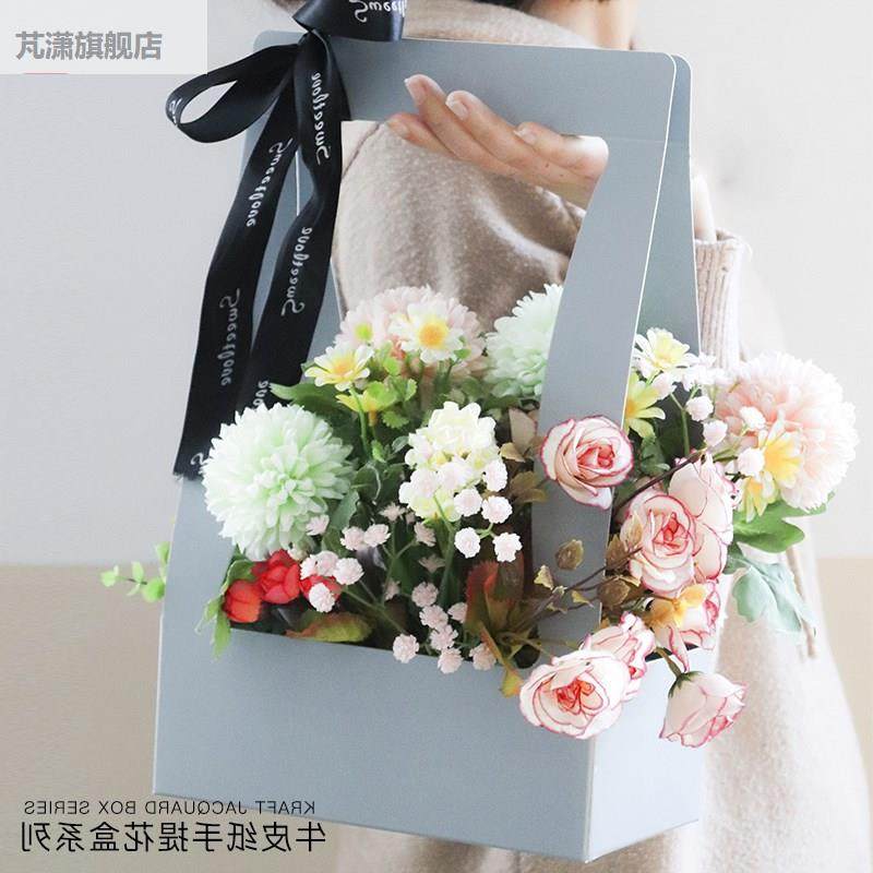 简约风防i水包装盒手提纸花艺纸袋礼品袋手提花篮纸质硬纸盒手拎